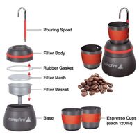 Going camping does not mean going without good coffee! Heading into the great outdoors, and need a coffee to get you started in the morning? This Espresso Maker is equally at home in your hiking pack or as part of your camping kit. Start your next adventure with the extra kick of a Campfire Compact Espresso Maker.