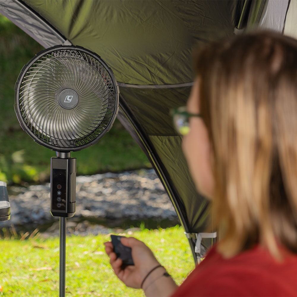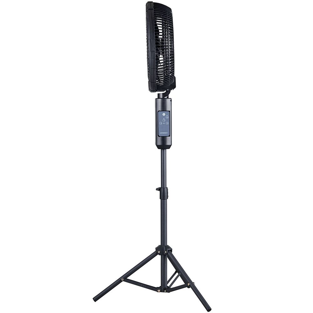 Stay cool and in control with the versatile and powerful Aerobreeze Tripod Fan. Designed for maximum comfort, it features 45 or 90-degree oscillation and an adjustable head that tilts up to 20 degrees, allowing you to direct airflow exactly where you need it. The fan attaches to a height-adjustable tripod which extends up to 130cm or easily converts into a freestanding fan with foldable base brackets. With seven speed settings, you can fine-tune your comfort level, all clearly visible on a large, easy-to-read digital display. Control is effortless whether at the fan itself or via the remote, and the built-in timer can be set for 1, 2, 4, 8 hours or continuous operation. A powerful 10,000mAh battery ensures long-lasting use, while the heavy-duty ABS plastic construction with a sturdy tripod offers reliable durability, season after season.