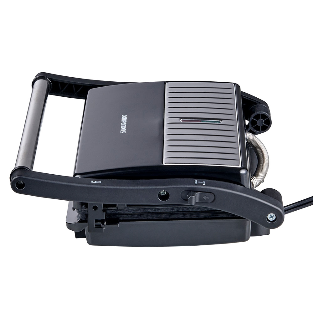 Dual functionality - from sandwich press to grill plate in seconds with the 180 degree folding plate design.