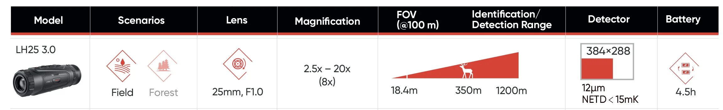 Find pigs, deer, fox's and more out to 1200m.