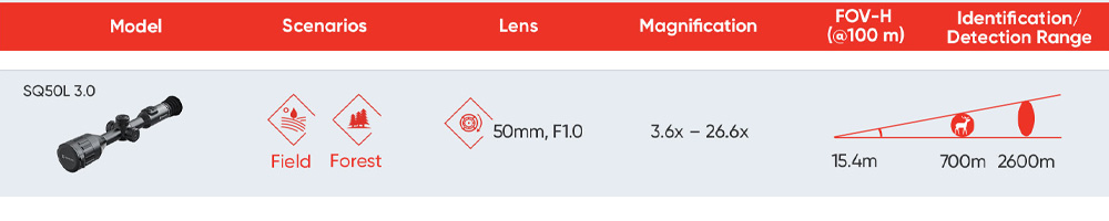The HIKMICRO STELLAR SQ50L 3.0 Thermal Scope boasts a high-performance 640 × 512 @12 μm thermal detector, delivering superior sensitivity (NETD<15 mK) and enhanced image clarity and the advanced HIKMICRO Shutterless Imaging System.