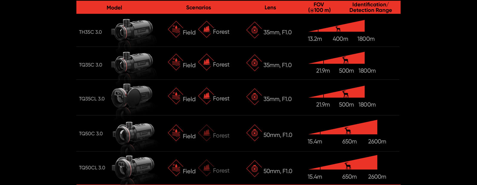 The TQ35CL 3.0 is equipped with a high-sensitivity thermal detector (NETD<15mK), ensuring stunning image clarity by capturing minute temperature differences. This superior sensitivity allows for precise identification of game and environmental details, regardless of challenging weather conditions or low visibility.