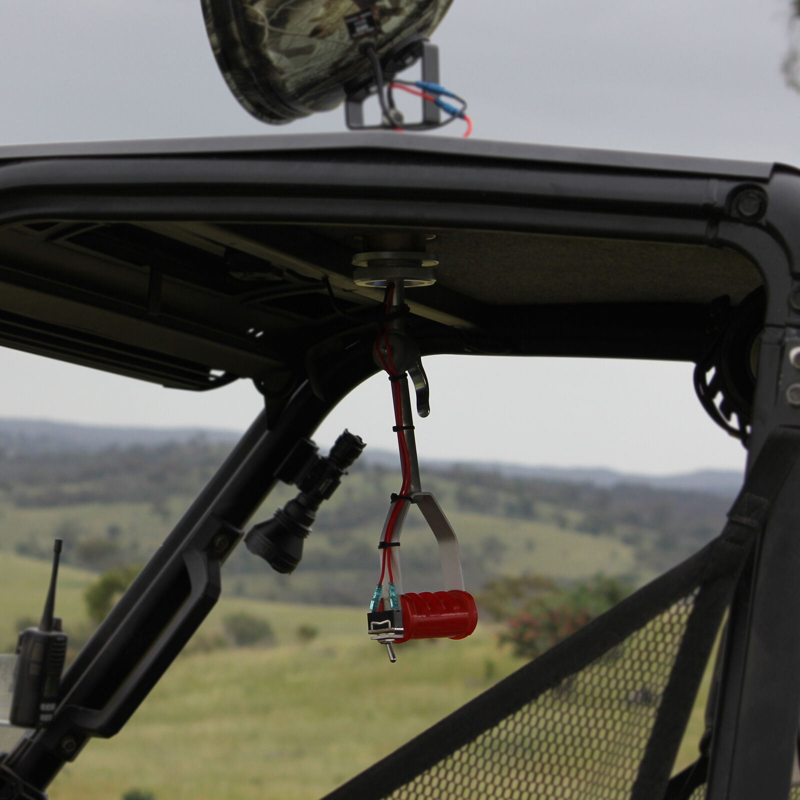 One piece steel ball joint with internal wiring to accommodate 3 wires (The negative, a switched positive for the light, and permanent power for thermal or other device)