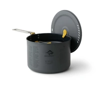 The Frontier Ultralight Two Pot Set includes a compact 1.3L and generously-sized 3L pot made of high quality hard-anodised aluminium alloy for durability and efficient heat transfer. Elevate your cooking experience with a ceramic non-stick coating, clever strainer holes in the pot lid, and a Lid Keep that allows you to clip the lid to the side of the pot to free up a hand for stirring or seasoning. A Click Safe handle provides a solid grip that can be reversed to hold the lid and any nesting contents in place during transport. The Frontier Two Pot Set is perfect for more expansive outdoor meals.