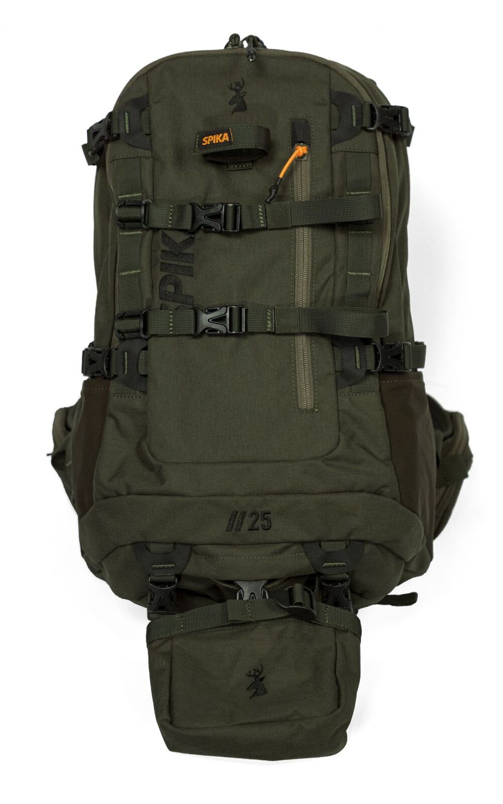 The Spika Drover II 25L Pro Pack is the perfect day-pack for single day adventures. Whether you’re hunting, fishing, hiking or just enjoying the great outdoors the Pro Pack is perfect for a variety of needs. Designed for durability and functionality the Pro Pack has 2 main large storage zones with 2-way zippers, a front quick-access pocket marked with an orange zip toggle and side pockets. This gives you plenty of ways to choose where to store all your gear from additional clothing layers, camera equipment, optics, first-aid, food, water and other accessories.