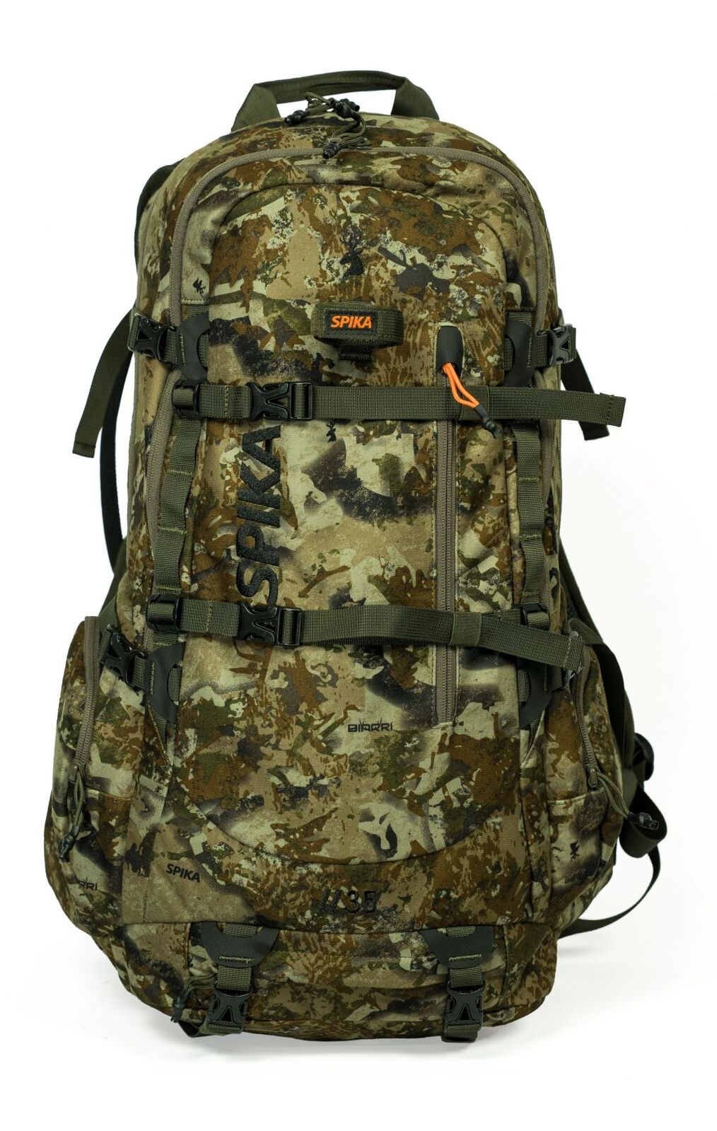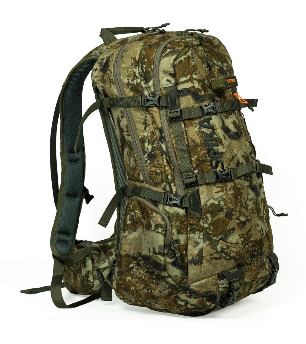 The Spika Drover II 35L Pro Pack is your ideal companion for one-day adventures. Be it hunting, fishing, hiking or any outdoor adventure the Pro Pack will allow you ample storage and configuration options to suit your needs. Designed for durability and functionality the Pro Pack has 2 main large storage zones with 2-way zippers, a front quick-access pocket marked with an orange zip toggle and side pockets. This gives you plenty of ways to choose where to store all your gear from additional clothing layers, camera equipment, optics, first-aid, food, water and other accessories.
